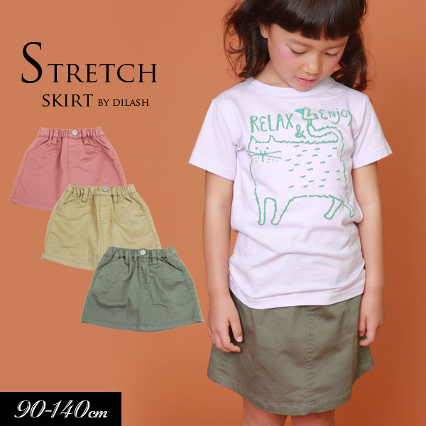 2020夏【DILASH/ディラッシュ】ウルトラストレッチ 台形スカ−ト≪90cm 100cm 110cm 120cm 130cm 140cm≫子供服 キッズ 女の子 女児 子ども ジュニア スカート ストレッチ≪店頭受取対応商品≫