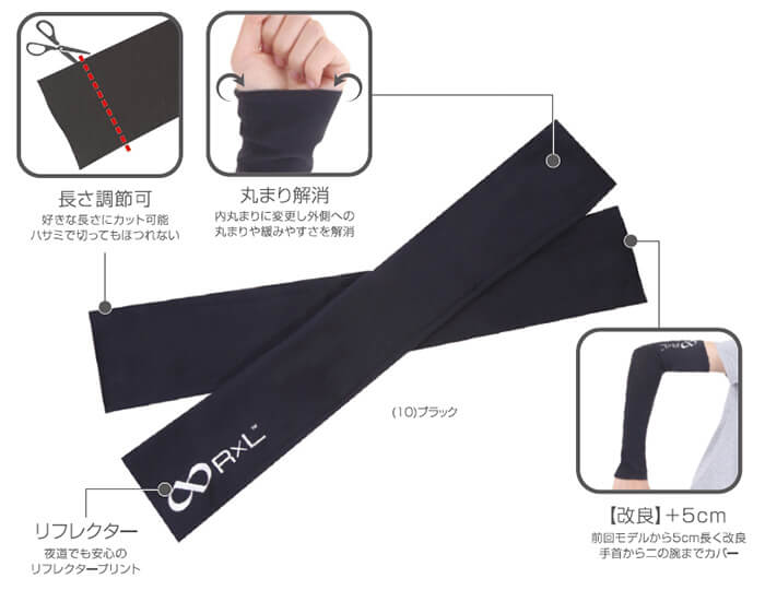 商品説明アールエル シームレスアームカバー特殊な編み機で実現!縫い合わせのない完全無縫製で柔らかい着け心地と快適さを追求しました。