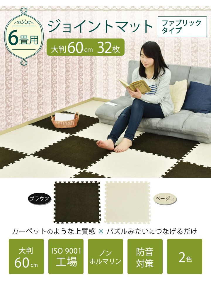 商品仕様サイズ(1枚)約60×60×厚み1cm毛足の長さ:1.5-2mmセット内容ジョイントマット 32枚・サイドパーツ(2タイプ×32個)重量(32枚)約12.8kg素材表面:ポリエステル 裏面:発泡ポリエチレン機能ノンホルマリンタイプ梱包サイズ650×340×650mm 1個口 14.3kg注意事項商品の性質上、開梱後の返品・交換は承れません。
